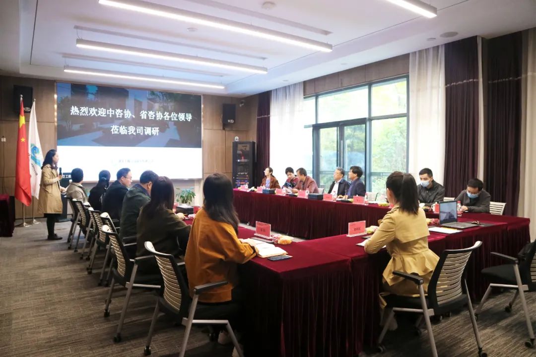 參觀結束后,在鼎正一樓珞珈會議室進行正式的調研座談,公司董事長王雁然、副總經理毛迎霞、副總經理姚建功、工程咨詢事業部經理彭亮及相關部門經理列席參加座談會。