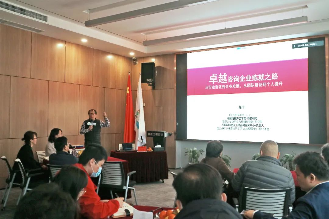 2021年3月4日,上海建筑造價大數據研究院院長、英國皇家特許測量師學會(RICS)資深講師趙豐老師受邀為鼎正傳經送寶,進行EPC模式相關問題的交流以及《卓越造價咨詢企業練就之路》專題授課。