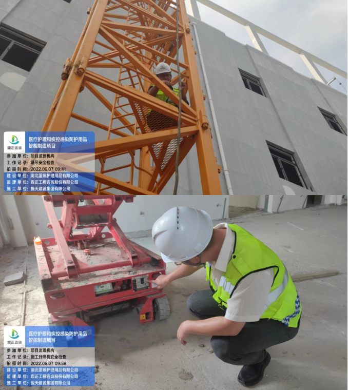 6月7日,醫(yī)療護(hù)理和疾控感染防護(hù)用品智能制造項(xiàng)目總監(jiān)理工程師陳雄對(duì)施工現(xiàn)場(chǎng)進(jìn)行塔吊、物料提升機(jī)、施工升降機(jī)、吊籃、臨時(shí)用電進(jìn)行聯(lián)合檢查,現(xiàn)場(chǎng)抽檢施工單位的安全生產(chǎn)規(guī)范。此次檢查以安全生產(chǎn)細(xì)化管理為要求,以查隱患、找短板、促整改、防事故為目的。安全是確保工程質(zhì)量的前提條件,質(zhì)量是建設(shè)單位所追求的最終目標(biāo),安全則是實(shí)現(xiàn)這一目標(biāo)的基本環(huán)境條件,安全監(jiān)理是這一環(huán)境條件的保護(hù)神。