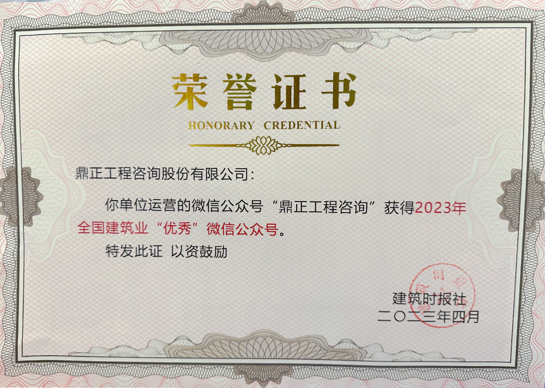 4月20日,由建筑時(shí)報(bào)主辦的2023年建筑業(yè)微信公眾號(hào)運(yùn)維經(jīng)驗(yàn)交流研討會(huì)暨全國建筑業(yè)優(yōu)秀公眾號(hào)頒獎(jiǎng)典禮在廣西南寧舉辦。鼎正官方微信公眾號(hào)“鼎正工程咨詢”再度榮獲“全國建筑業(yè)優(yōu)秀微信公眾號(hào)”榮譽(yù)稱號(hào)。