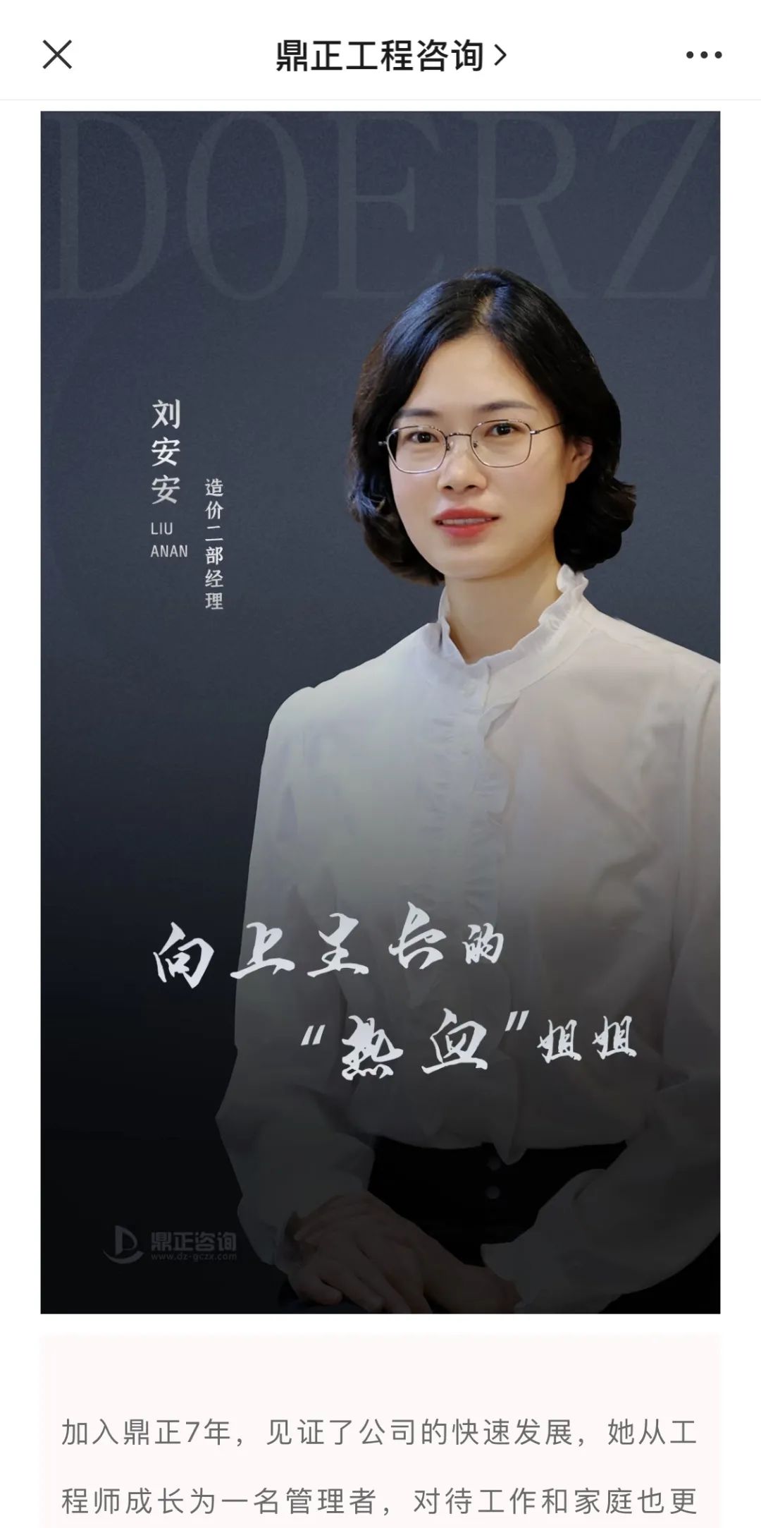 “鼎正工程咨詢”微信公眾號(hào),既是公司品牌傳播的窗口,也是同事們互動(dòng)交流的平臺(tái)。從2020年起,微信公眾號(hào)便相繼推出了“我們眼中優(yōu)秀的你”、“鼎正故事”、“榜樣人物”、“鼎正人物”等人文宣傳板塊,通過深度挖掘工程師的成長故事,全方位展示鼎正人的企業(yè)文化,為讀者奉上一道道關(guān)于奮斗的精神大餐。