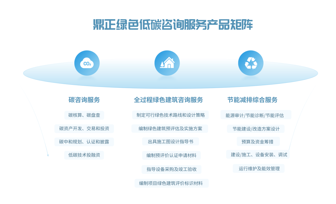 鼎故革新,正己守道。作為一家以創(chuàng)新驅(qū)動(dòng)變革的工程咨詢企業(yè),我們密切關(guān)注國家前沿動(dòng)態(tài),緊跟國家政策,不斷優(yōu)化產(chǎn)品結(jié)構(gòu)和服務(wù)模式。在“雙碳”目標(biāo)下,自2020起即針對工程領(lǐng)域的降碳、減排展開探索,協(xié)助政府統(tǒng)籌區(qū)域能源消耗,為碳指標(biāo)交易及資產(chǎn)管理、綠色金融、政策法規(guī)等方面的規(guī)劃作出指導(dǎo),這為孵化綠色低碳咨詢產(chǎn)品矩陣打下堅(jiān)實(shí)的基礎(chǔ)。