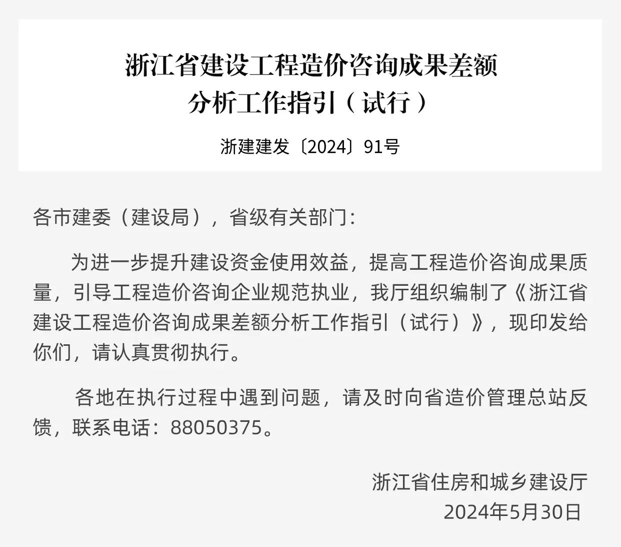 浙江省建設(shè)廳關(guān)于印發(fā)《浙江省建設(shè)工程造價咨詢成果差額分析工作指引(試行)》的通知