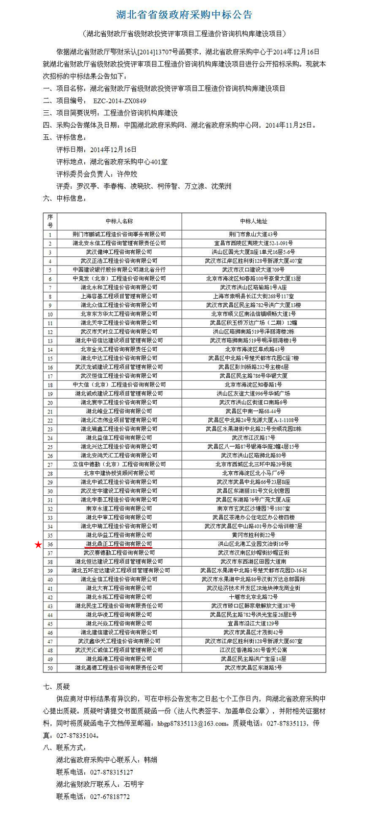 【經(jīng)營(yíng)成果】我司入選湖北省財(cái)政廳省級(jí)財(cái)政投資評(píng)審項(xiàng)目工程造價(jià)咨詢機(jī)構(gòu)庫(kù)