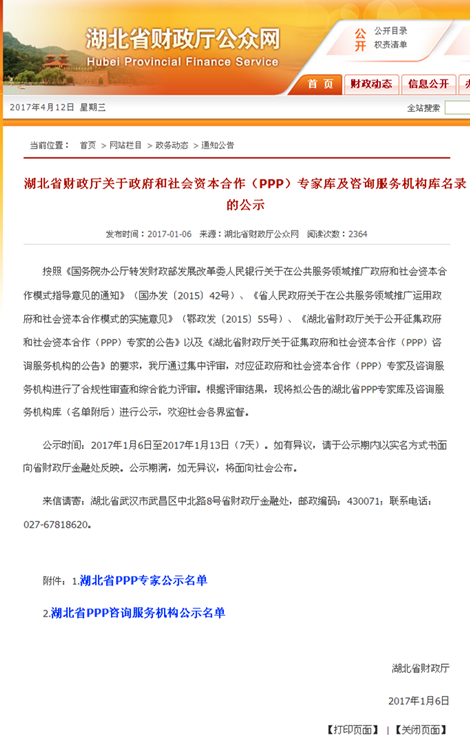 我司入選湖北省財政廳PPP咨詢服務機構庫,同時3位同事入選湖北PPP專家?guī)?/span>