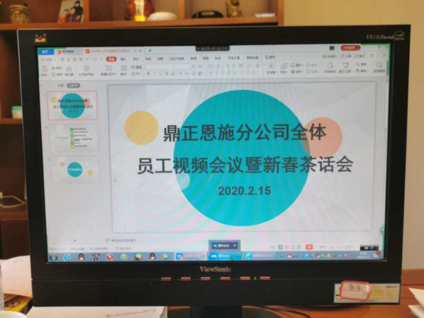2020年2月15日下午三點,受疫情的影響,鼎正恩施分公司通過視頻會議的形式,召開了全體員工視頻會議暨新春茶話會,即使大家沒有以面對面的方式參與這次會議,但是也能夠通過網絡與大家零距離地分享自己在這個特殊春節的所見所聞與個人經歷。